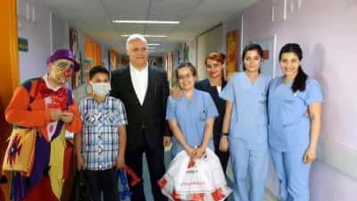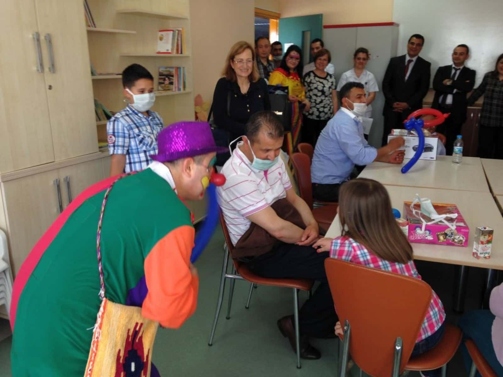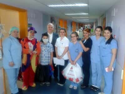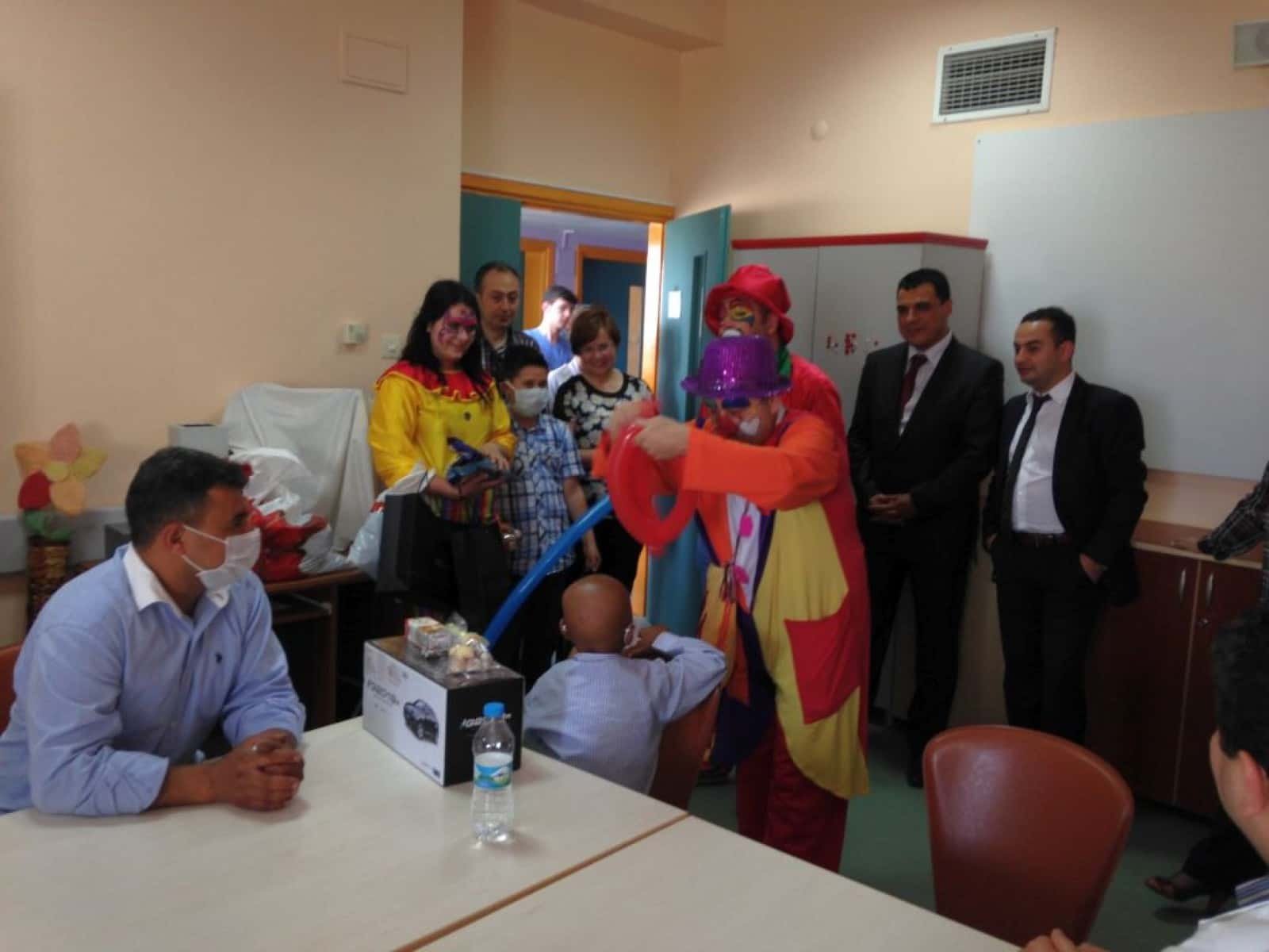 23 Nisan Ulusal Egemenlik ve çocuk Bayramı kutlamalarını her zaman olduğu gibi yine Hastanede tedavi görmekte olan ve aynı zamanda tedavi olup iyileşmiş çocuklarımızın da katılımıyla birlikte coşkuyla kutladık.Ailelerinin de katılımıyla birlikte eğlenceli aktivitelerin eşliğinde çocuklarımıza hediyelerini verdik. Palyaçoların sunduğu görsel etkinlik ile çocuklar mutlu saatler geçirme fırsatı yakaladı. Hepsinin iyileşmesi ve sağlıklı bir şekilde tekrar aramıza katılmaları ise bizler için ayrı bir mutluluk kaynağı olacaktır.